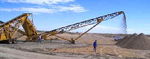 Available In 24”, 30” and 36” Belt Widths > Heavy Duty Truss Design > Side Fold For Transport > Counterweight Design For Height > Wrap Pulley Drive > Hydraulic Or Electric Drive > Radial Undercarriage Management Status: