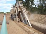 CHAINSAW Operating Weight - 161,000 lbs. Maximum Cutting Depth - 16' 0" Cutting Width, Min. - Max. - 30" - 42" Maximum Chain Speed - 492 ft./min. Chain Drive Type - Mechanical Engine: Cat C-13 ACERT, 440 Horsepower Drive type to wheels or track - Hydraulic Maximum Travel Speed - 2.4 mph Transport Length - 49' 2" Width - 10' 4" Height - 11' 6" Management Status: