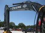 Productivity 177 SAE net horsepower 6.8 L six-cylinder PowerTech Plus™ Tier III-certified diesel provides power without compromise in all conditions. Faster hydraulics, increased swing torque, and more drawbar pull help boost production. Powerwise™ III management system perfectly balances engine and hydraulic performance. Generous hydraulic flow and best-in-class metering ensure powerful digging force, precise low-effort control, and superb multifunction operation. Wide expanse of glass, narrow cab posts, and numerous mirrors provide nearly unobstructed all-around visibility. Comfort All controls are within easy reach, and their arrangement makes ergonomic sense. Pilot controls provide smooth, predictable, low-effort control. Spacious, quiet, well-appointed operator station features a full suspension high-back seat that adjusts independently or together with the control console to accommodate any size operator. Automatic, high-capacity blend-air bi-level climate control system with optimally positioned louvers helps keep the view clear and the cab comfortable. Uptime/Service Intuitive, multi-language monitor provides a wealth of machine operating info and control. Its LCD screen displays operating, diagnostic, and maintenance data with easy-on-the-eyes clarity. Durable Tier III-certified diesel starts easily, runs quiet, and is easy on fuel. Hydraulically driven fan runs only as needed, reducing fuel consumption and minimizing debris flow through the coolers. Wide fin-spacing lets trash easily pass to resist plugging. Rigid, reinforced D-channel mainframe and three welded bulkhead plates within the boom and arm deliver maximum strength and durability. Reinforced resin thrust plates, grooved bushings, and tungsten carbide thermal-coated bucket joints increase arm, boom, and bucket lube intervals to 500 hours. Service intervals are 500 and 5,000 hours for engine and hydraulic oils. So your machine will require fewer breaks for routine maintenance. Specifications: MANUFACTURER John Deere MODEL 240D LC DATE OF SPECIFICATION 6-Oct ENGINE Manufacturer/Model John Deere / 6068H Net Power hp (kW) @ Rated rpm 177 (132) @ 2000 # Cylinders and Desplacement cu in. (L) 6 - 414 (6.8) HYDRAULIC SYSTEM System Design Not published Main Pump Type Variable axial-piston Total Main Pump Flow gpm (L/m) 118.4 (448) Normal Relief Pressure psi (kPa) 4980 (34310) Boost Relief Pressure psi (kPa) 5260 (36240) Max. Propel Pressure psi (kPa) 4980 (34310) UNDERCARRIAGE Gauge ft (m) 8' 6" (2590) Overall Track Length ft (mm) 15' 2.7" (4640) Track Length on ground ft (mm) 12' 7.2" (3840) Width over Std Track ft (mm) 11' 1.5" (3390) No. of Lower Rollers / Side 9 No. Carrier Rollers / Side 2 Ground Clearance in. (mm) 18.1" (460) Standard Track Pad in. (mm) 31.5" (800) Grd. Press - Std. Pad psi (kPa) 5.34 (36.8) Optional Track Pad in. (mm) 27.6" (700) Max. Travel Speed mph (km/h) 3.4 (5.5) Off-level capacity % - (deg) 100% (45º) Drawbar Pull lb (kg) 49,920 (22644) ARM LENGTH Standard Arm ft (mm) 9' 9" Optional Arm ft (mm) 11' 10" (3610) Bucket Range SAE cu yd (cu m) 0.92 - 2.03 (0.70 - 1.55) Reference Bucket SAE cu yd (cu m) 1.38 (1.06) PERFORMANCE Reach @ G.L. std. Arm ft (mm) 32' 9" (9980) Max Dig Depth - Std. Arm ft (mm) 22' 5" (6830) Dig Depth-8' Flat Bottom-Std Arm ft (mm) 21' 9" (6630) Dig Depth-Vertical Wall-Std Arm ft (mm) 19' 5" (5920) Dump Height - Std. Arm ft (mm) 23' 6" (7160) Lift Cap. Over Frt @G.L. lb (kg) 17,721 (8038) @20' Lift Cap. 360 deg. @ G.L. lb (kg) 11,241 (5099) @20' Arm Force-Normal- Std. Arm lb (kg) Not published Arm Force-Boost-Std. Arm lb (kg) 27,640 (122.9) Bucket Digging Force - Normal lb (kg) Not published Bucket Diggine Force - Boost lb (kg) 37,670 (167.6) Tail Swing Radiue ft (mm) 9' 7.8" (2940) Swing Speed rpm 13.5 TRANSPORT SPECIFICATIONS Standard Transport Length ft (mm) 33' 4" (10160) Standard Transport Height ft (mm) 10' 1" (3070) Standard Transport Width ft (mm) 11' 1.5" (3390) CAPACITIES Fuel Tank gal (L) 132 (500) Hydraulic Reservoir gal (L) 39 (147.6) SAE OPERATING WEIGHT lb (kg) 54,434 (24691) Metric Ton Weight 24.691 Specifications are based on published information at the time of publication. Specifications are subject to change without notice. Management Status: